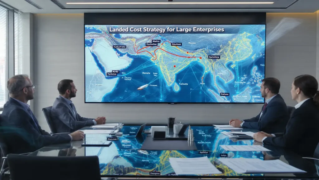 Corporate logistics team planning multi-port import operations and regulatory compliance for optimized landed cost
