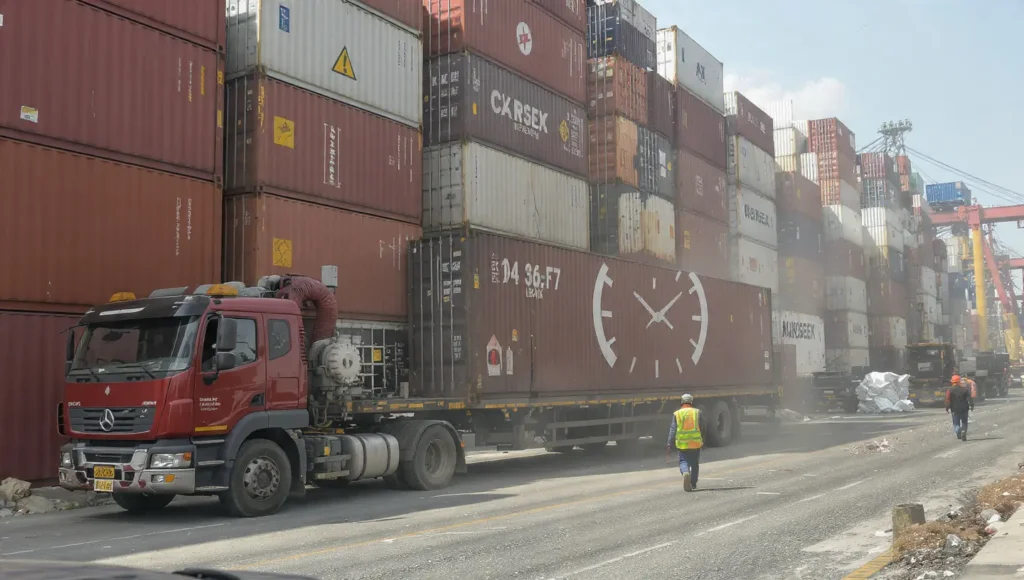Delayed shipping containers at Indian port showing demurrage and detention charges increasing landed cost.